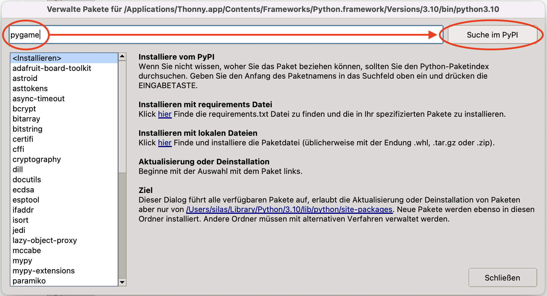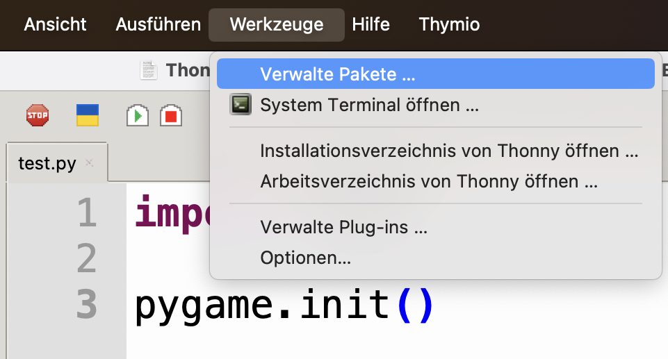 Das pygame-Paket installieren